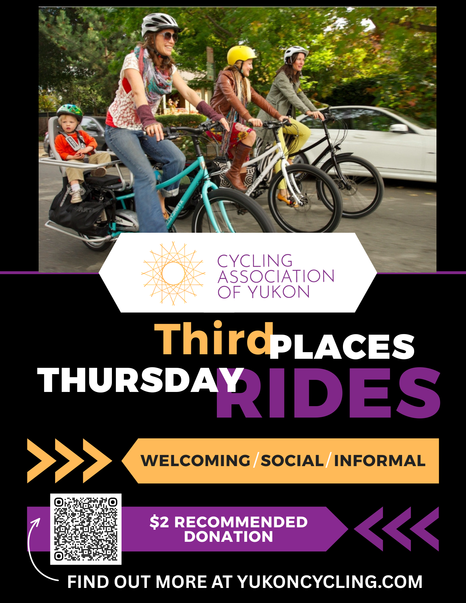 Join the Whitehorse Urban Cycling Coalition and the Cycling Association of Yukon for our monthly Third Places Rides.